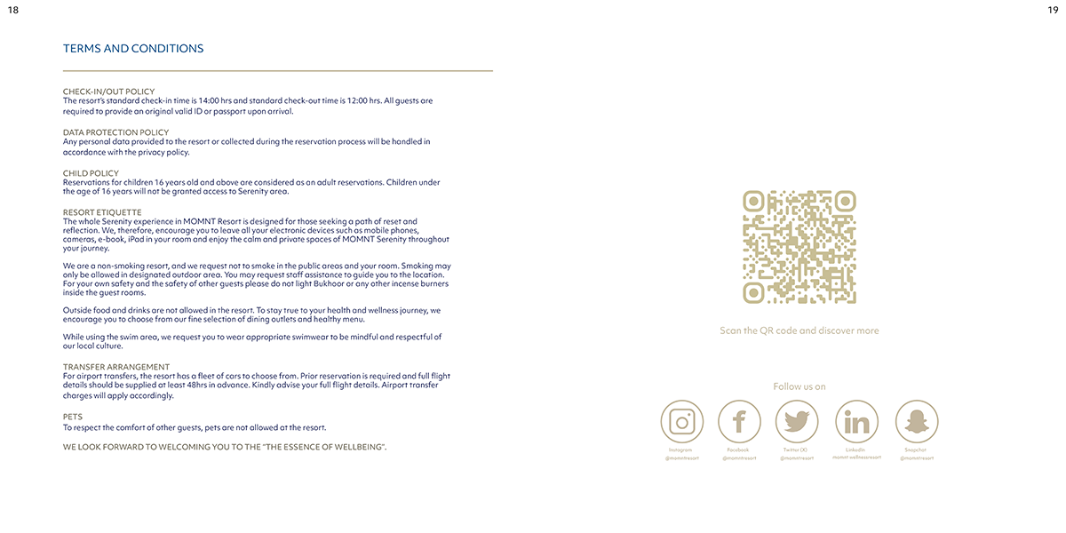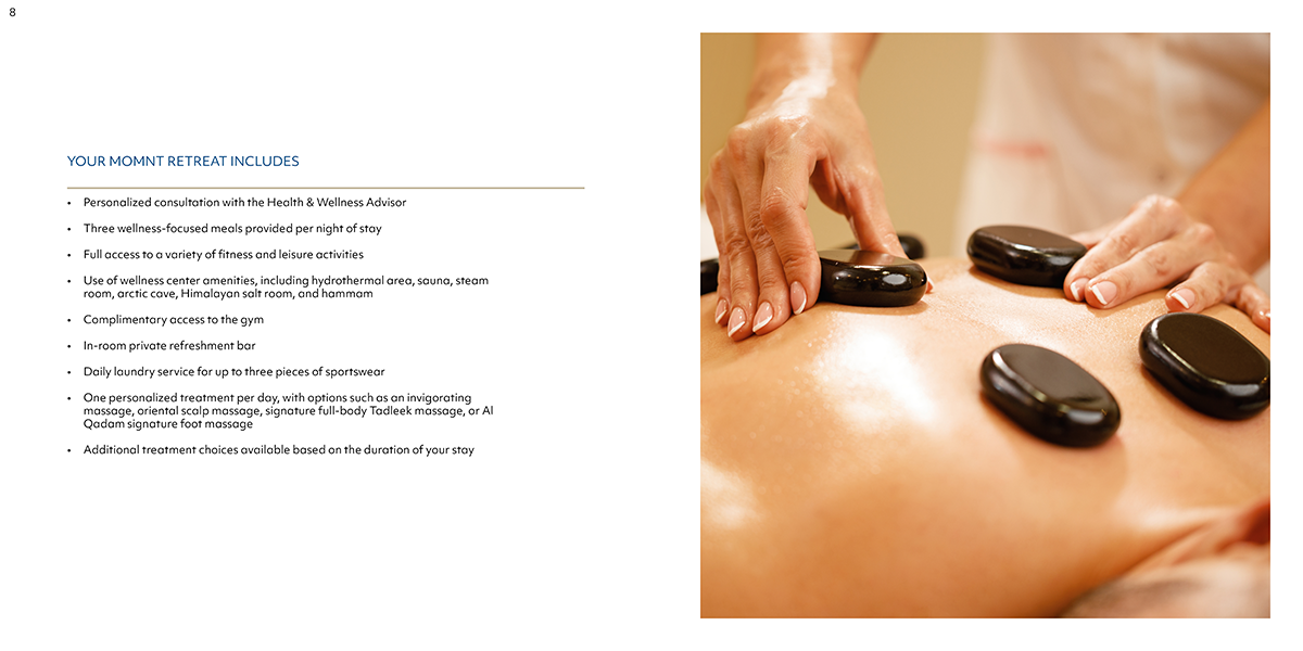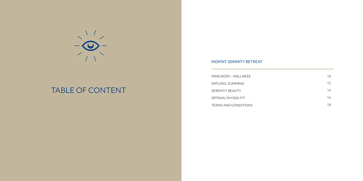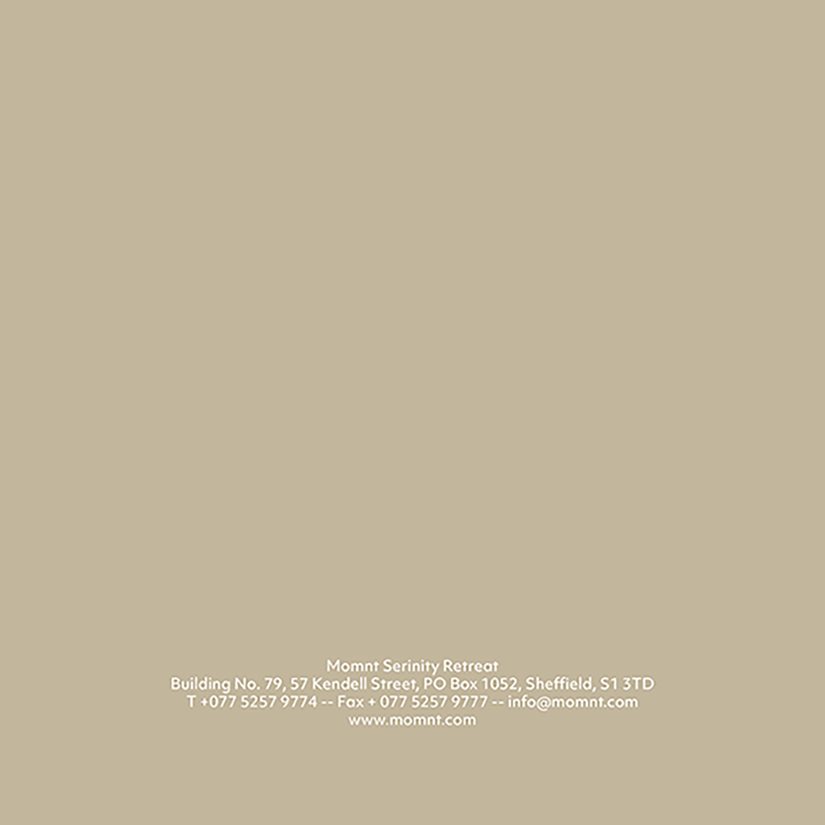 This brochure was designed not only as a promotional tool but as a calming experience in itself—one that mirrors the journey of MOMNT: a retreat into clarity, simplicity, and presence.